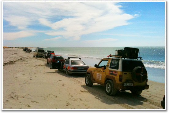 Um 13:00 Uhr bekamen wir das Startsignal. Vor der Fahrt am Strand mussten wir die ca. 40 Meter lange
