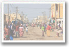 In der Stadt herrscht buntes Treiben und im Vergleich zu Mauretanien vielen eine erhebliche Zahl von Touristen auf. Dies schlug sich auch in dem verbreiteten Aufkommen von "fliegenden Händlern" wieder. Man bekam alle paar Schritte Ketten, Masken oder Stadttouren angeboten, jedenfalls solange man sich auf den Haupt-Verkehrsadern der Stadt befand. Abseits verrichteten Einheimische ihre Arbeiten und ließen sich kaum von umherlaufenden Touries stören. Lediglich die Kinder kamen neugierig auf uns zu, wollten fotografiert werden oder fragten fleißig nach "Cadeaux, Cadeaux". Fotografieren, insbesondere von Personen, war grundsätzlich nicht so einfach, weil es bei den afrikanischen Volksgruppen nicht so sehr beliebt war. Wenn man jedoch vorher fragte oder ein wenig ins Gespräch kam (ob mit Sprache oder Händern und Füßen), ließen sie es oftmals zu. Wir kauften ein paar Kleinigkeiten und hatten riesen Spass bei den zähen Preisverhandlungen.